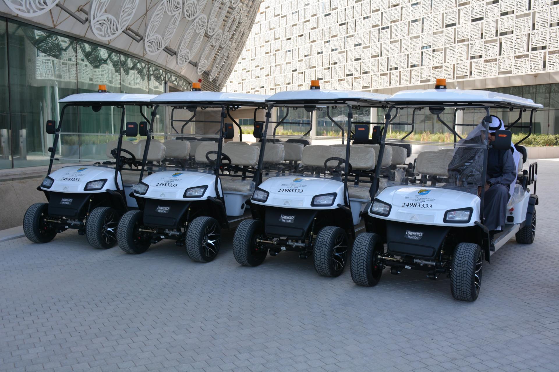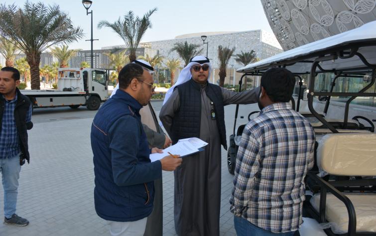 As part of the ongoing efforts by the Department of Security and Safety to serve the university community and improve the services provided to our male and female students and university staff, the necessary procedures, approvals, and measures were taken in accordance with the regulations and laws. Four golf carts were received for use in transporting students between university buildings and facilities within Sabah Al-Salem University City. This was done in collaboration and coordination with the university’s working centers and relevant entities (I&M Trading and Contracting Company), on Wednesday, December 25, 2024. Representatives from the aforementioned company provided a detailed explanation of the vehicles and trained the supervisory staff of the Department of Security and Safety on how to use them and the requirements to follow when driving the carts.